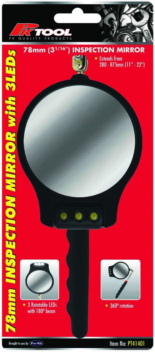 Telescopic Inspection Mirror with 3 LED Lights - PT41401