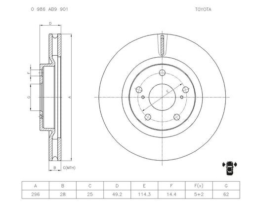 BoschOnly 2 left!Bosch Disc Brake Rotor Vehicle Compatibility Toyota Aurion Toyota Camry Toyota RAV 4 Specifications Diameter: 296mm Original Height: 49.2mm Orig...