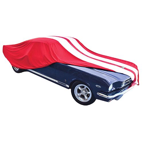 Show Car Cover - Fire Red with White Stripes (Medium)
