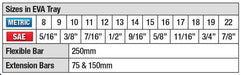 - Includes 22 sizes, one flexible bar & two extension bars