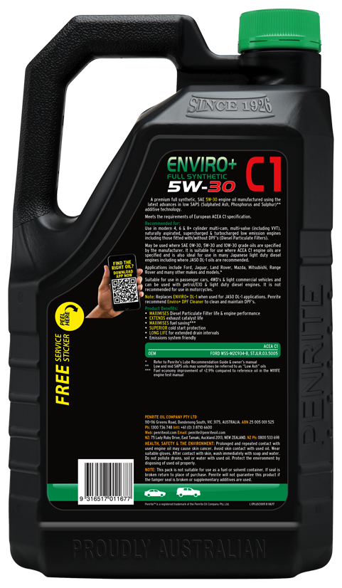 PenriteOnly 6 left!Enviro+ C1 is a premium Full Synthetic, SAE 5W-30 engine oil. It is manufactured using the latest advances in low SAPS (Sulphated Ash, Phosphorus a...