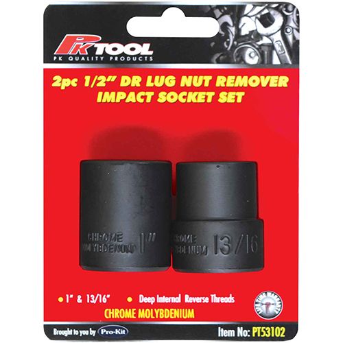 PK ToolsOnly 1 left!2 Piece 1/2" Drive Lug Nut Remover Impact Socket Set Removes stripped, damaged & frozen nuts, bolts & wheel nuts Fits locking wheel nuts o...