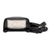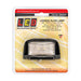 LED licence plate lamp with black housing, 58mm x 35mm x 21mm, 12/24 volt, ADR approved (one required for top mount, two required for side mount), screw surface mounted, 1m cable with plug compatible with 100 and 150 series lamps, IP67 ingress protection rating, 5 year warranty, sold and packaged individually (blister retail pack).