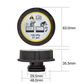 Radiator Caps are designed to seal the top of the radiator filler neck to prevent coolant loss, pressurise the cooling system and raise the boiling point of the coolant.
